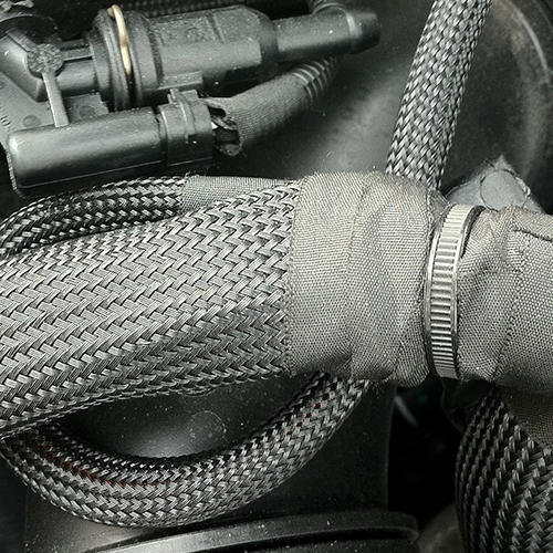FLEXO STAINLESS XC sleeve allows users to take any stock or custom hose, slip a length of FLEXO STAINLESS XC sleeve over, hide the cut ends under clamps and achieve the same look and protection as other high priced over braided hoses at a fraction of the cost. FLEXO STAINLESS XC is a new extra coverage product providing fuller coverage and results in a continuous stainless steel shine